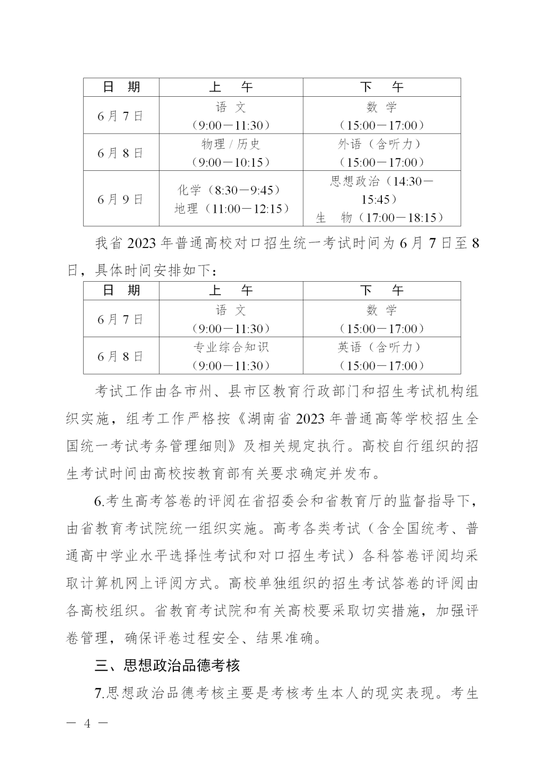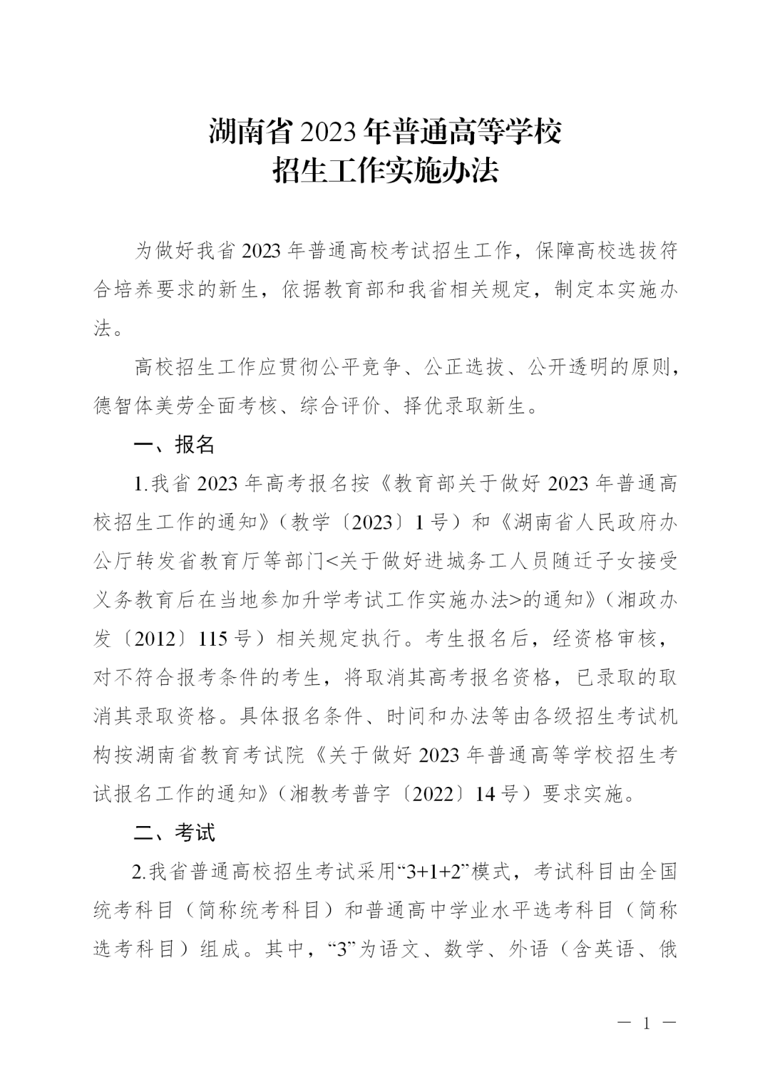 湖南省2023年普通高等学校招生工作实施办法