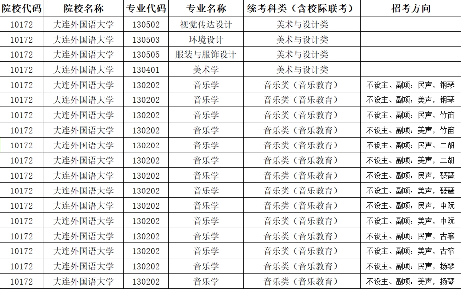 大连外国语大学2024年艺术类拟招生专业对应的省统考科类