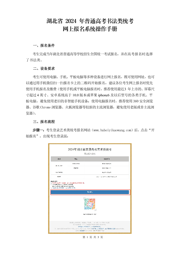 湖北省2024年普通高考书法类统考网上报名系统操作手册.pdf