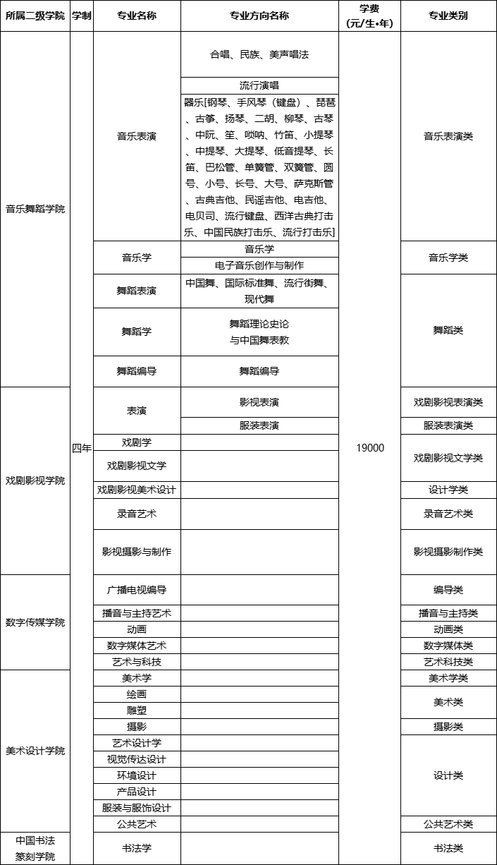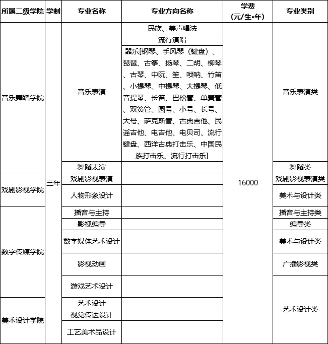 11.其余各艺术本科专业和所有艺术专科专业直接认定各省艺术统考或校级联考成绩