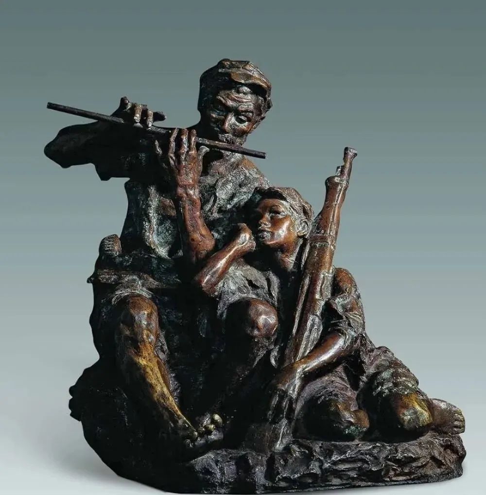考题内容: 考题为是3个人看艰苦岁月雕塑场景画,切必须横构图