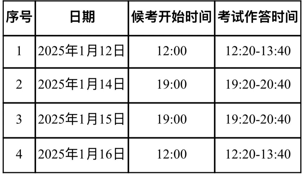 考试作答时间:2025年1月16日19:20-20:40