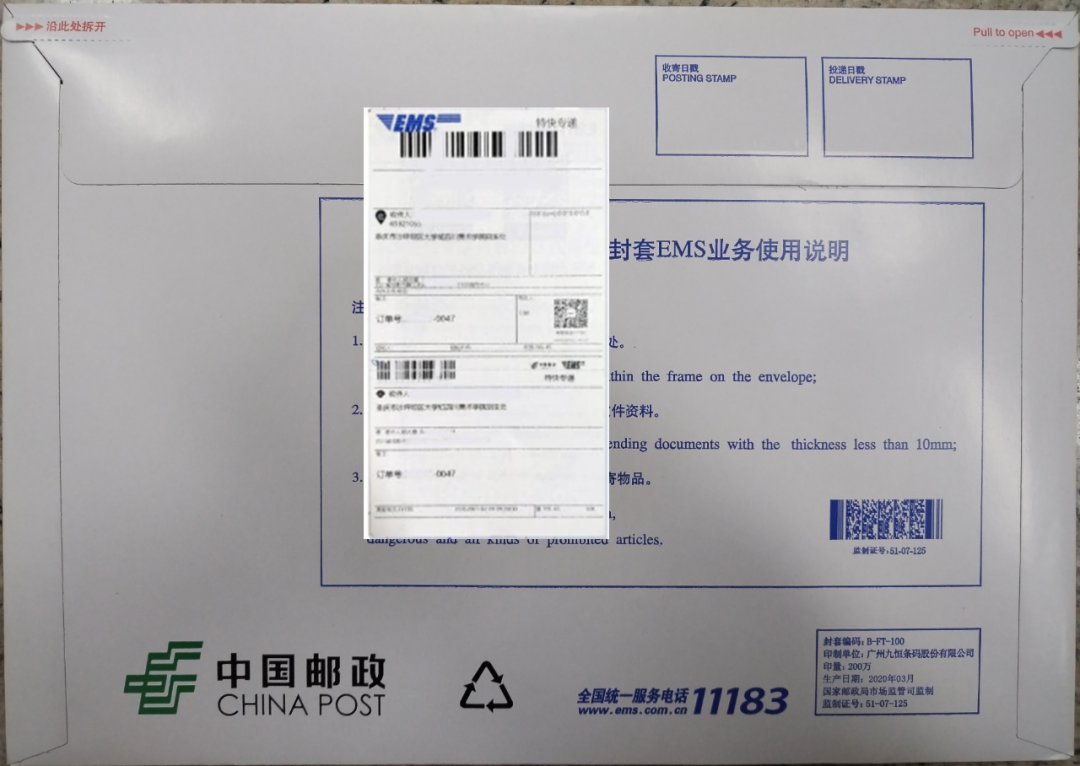 封装好的答题卷,须于考试当天通过中国邮政特快专递EMS寄出,如遇特殊情况,寄出时间不得晚于第二天中午12点(以EMS寄出邮戳时间为准)。