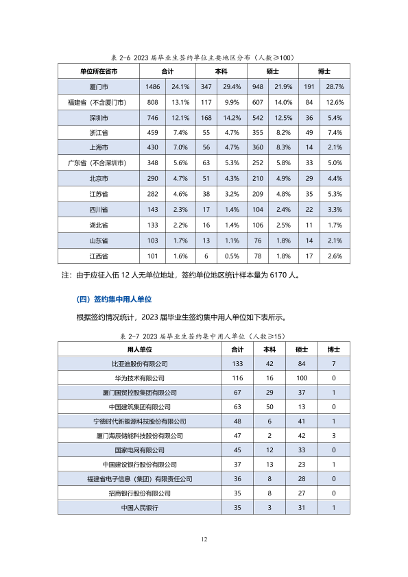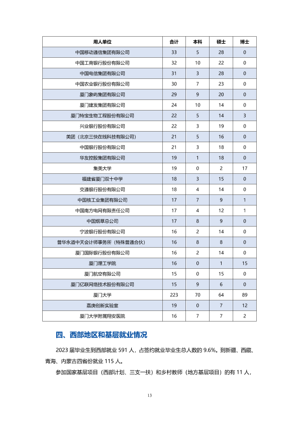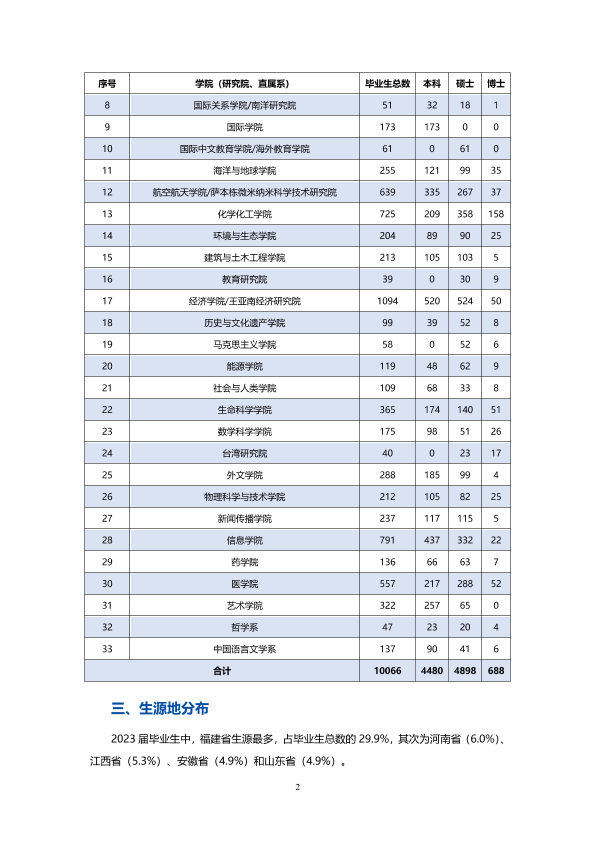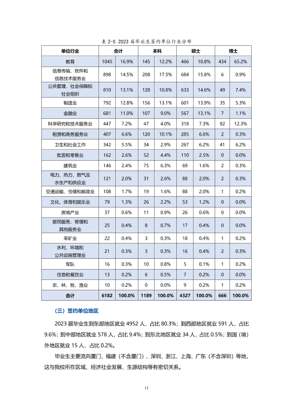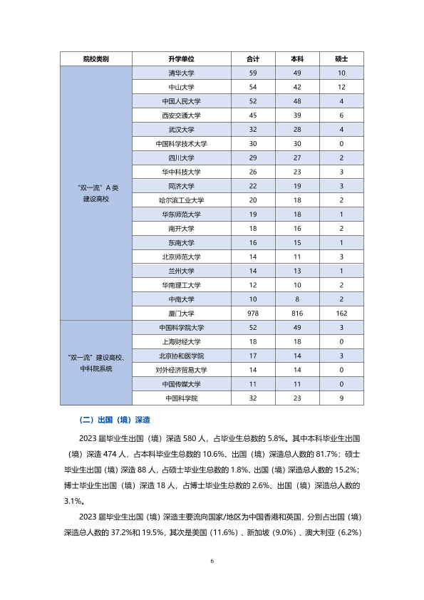 厦门大学2023年就业质量报告