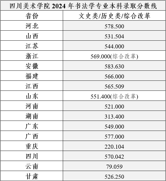 书法学专业2024年首次编制分省分专业计划,纳入省统考批次录取,仅提供2024年录取分数线作参考。