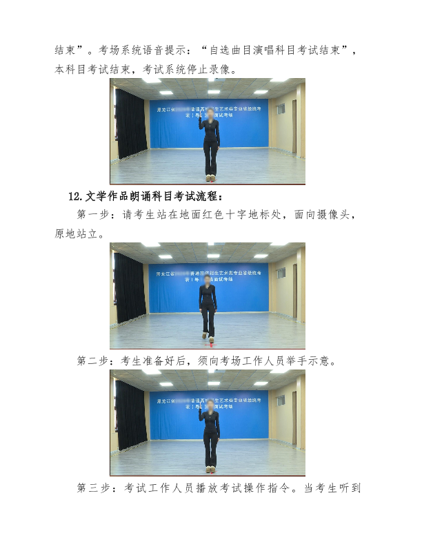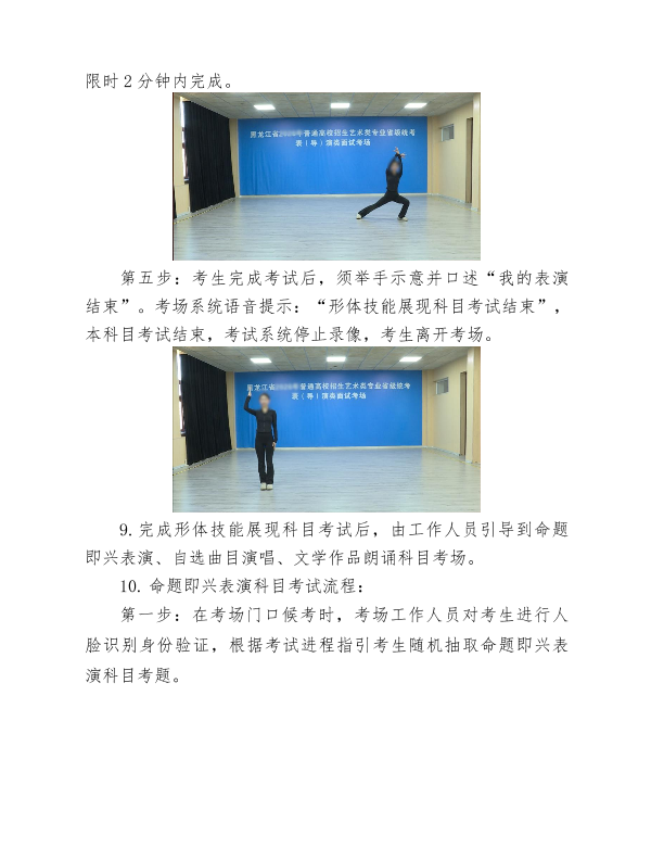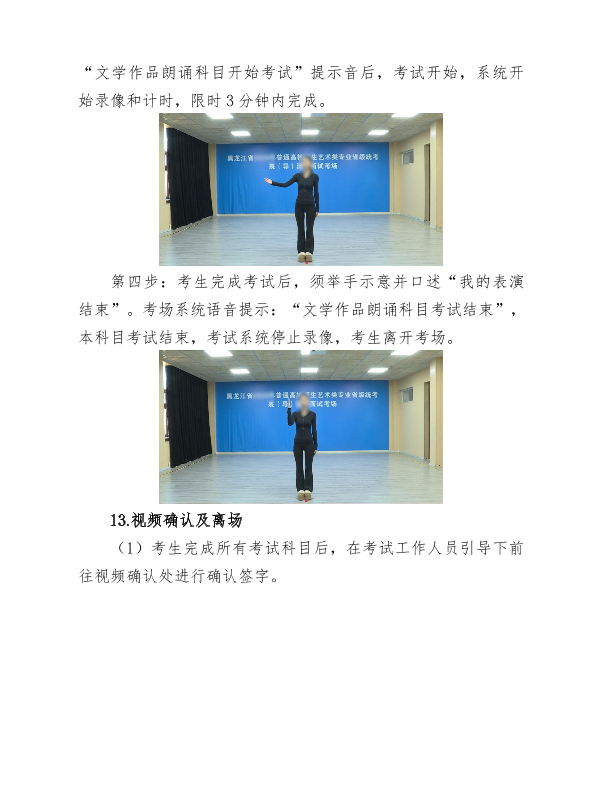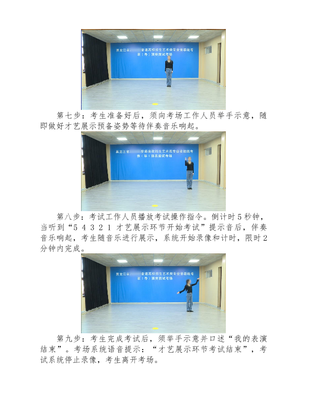 考生务必认真观看黑龙江省普通高等学校招生艺术类专业省级统考表(导)演类考试政策解读及考试流程模拟演示视频,全面了解掌握考试要求和考试流程,确保按视频演示规范程序完成本人全部考试科目。