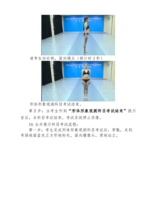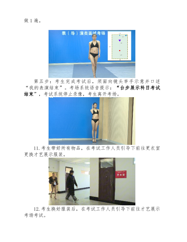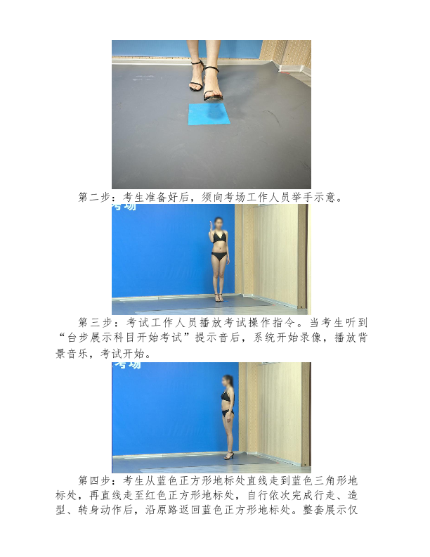 5.服装表演方向考生在进入考点前,建议提前着好泳装,以便备考,女生须穿不带防水台的高跟鞋。