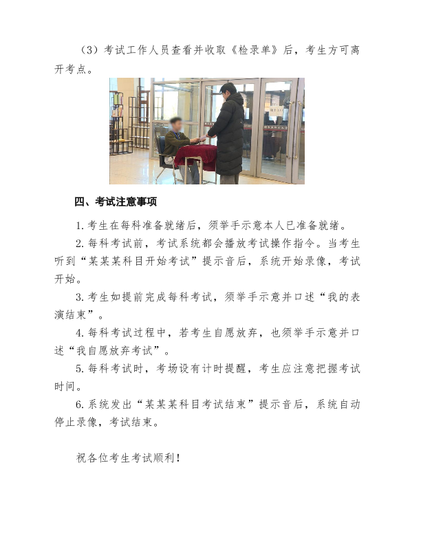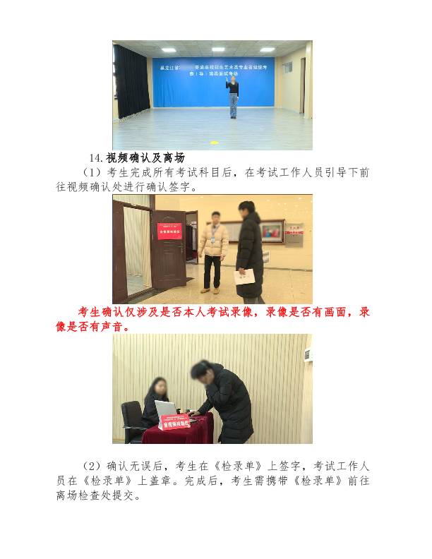 8.考生完成全部科目考试后,须前往音视频确认处核对本人考试录制内容,确认无误后签字离场。