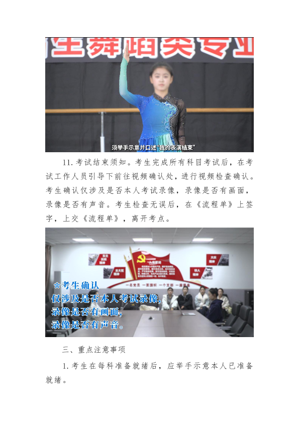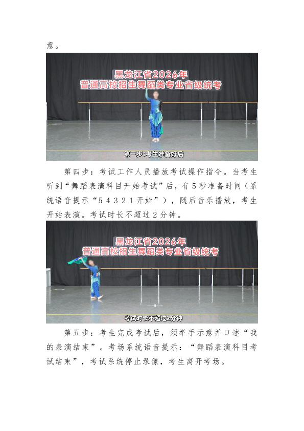考生务必认真观看《黑龙江省普通高等学校招生艺术类专业省级统考舞蹈类考试政策解读及考试流程模拟演示视频》,全面了解掌握考试要求和考试流程,确保按视频演示规范程序完成本人全部考试科目。