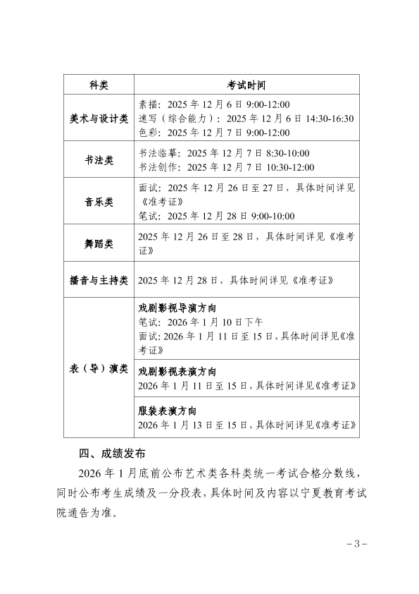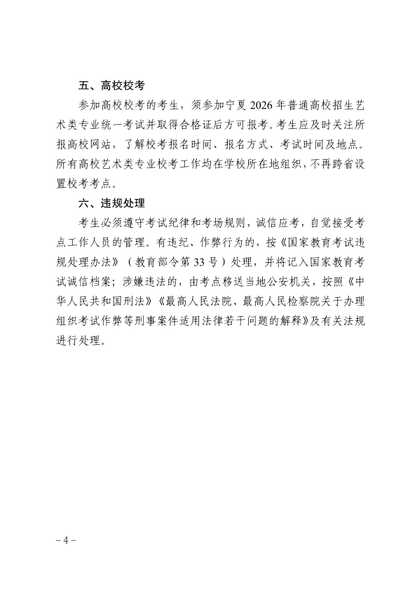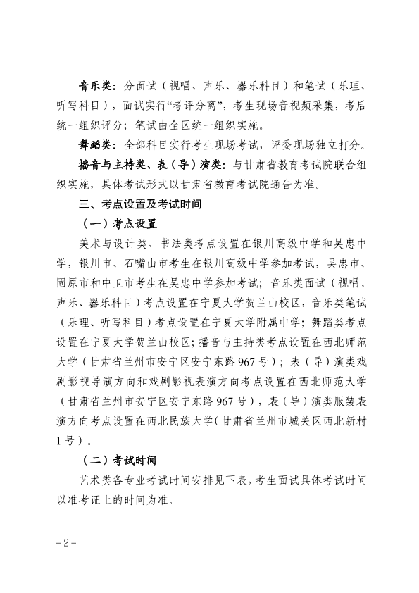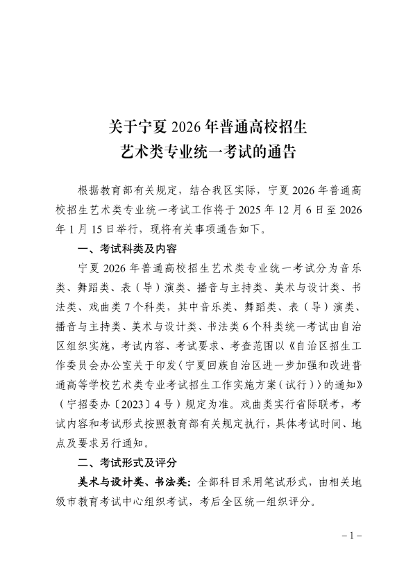关于宁夏2026年普通高校招生艺术类专业统一考试的通告