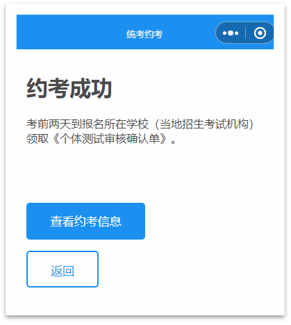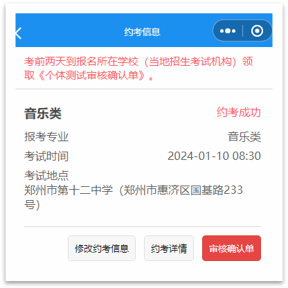 (b)在艺考预约小程序“我的”-“约考信息”中能查到相关专业的约考信息,则表示该专业约考成功。