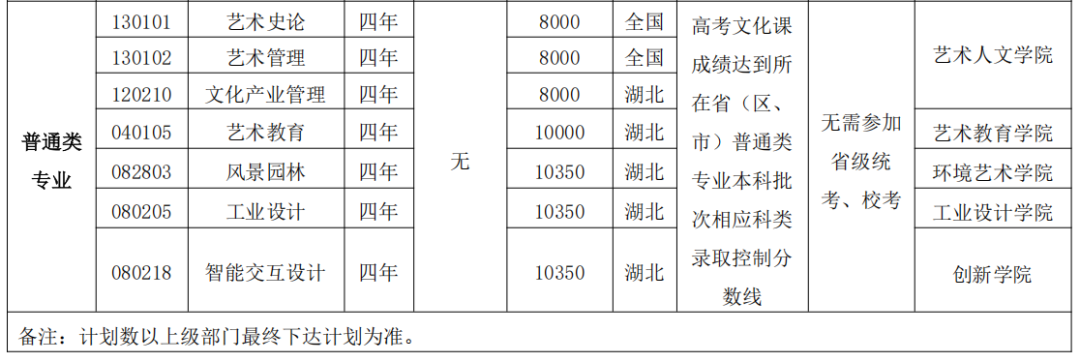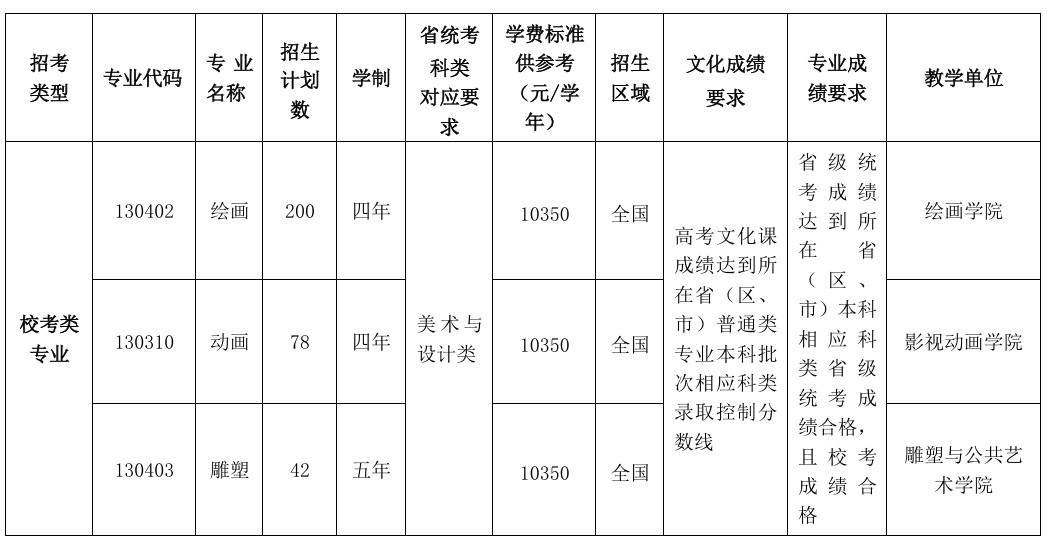 注:1.校考类专业面向全国招生,不做分省计划,按校考专业成绩全国统一排名。