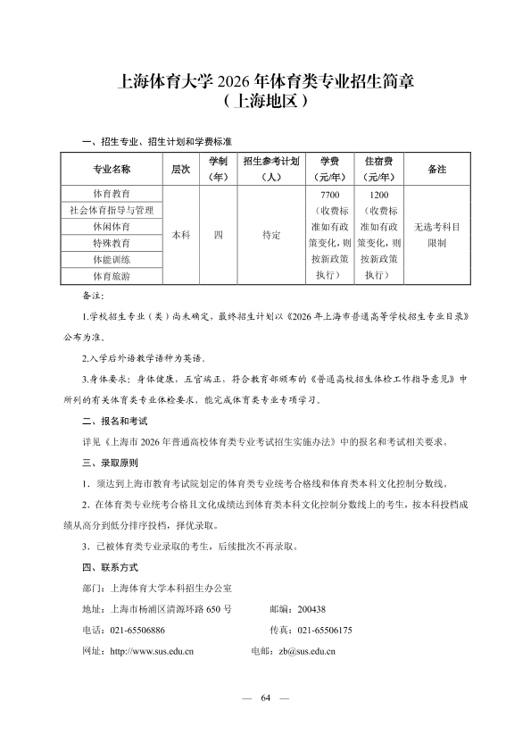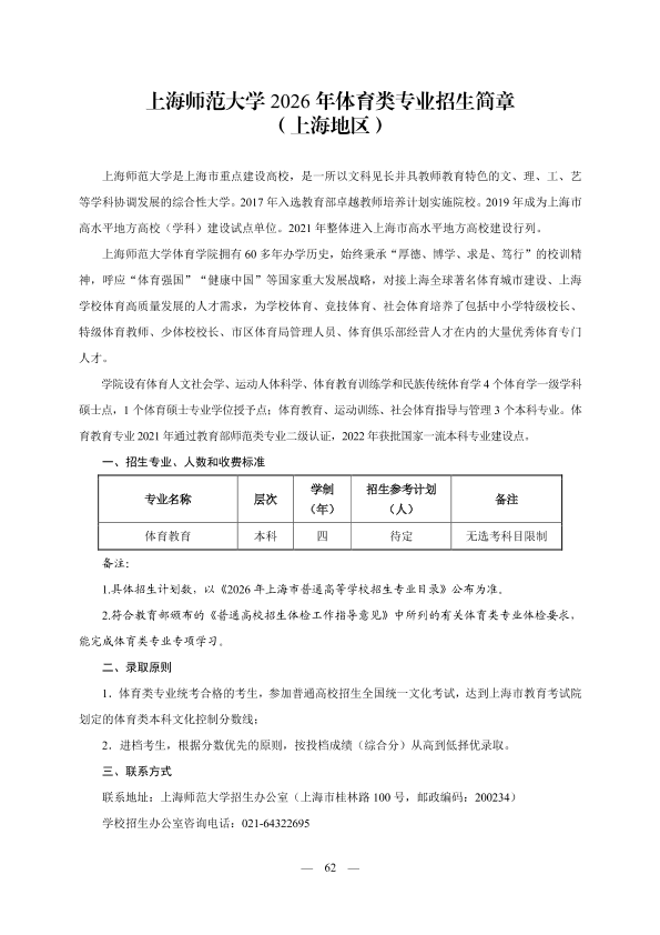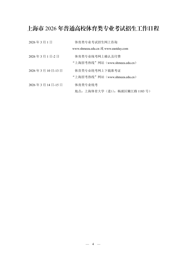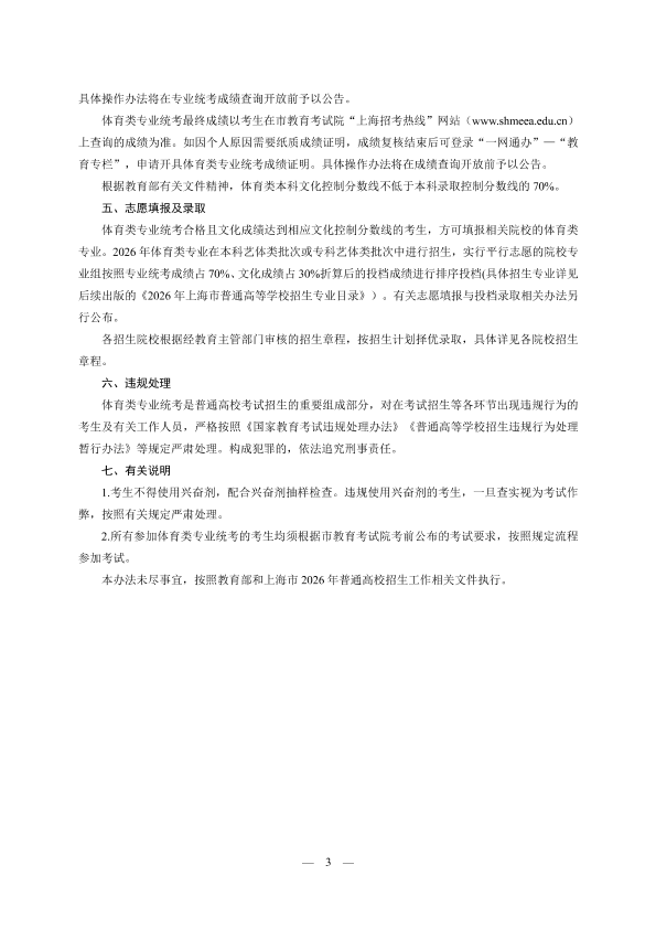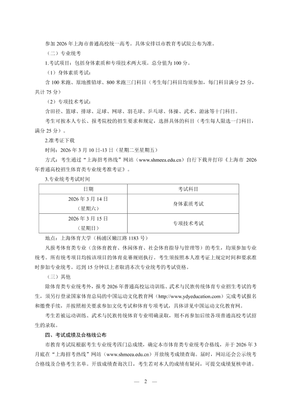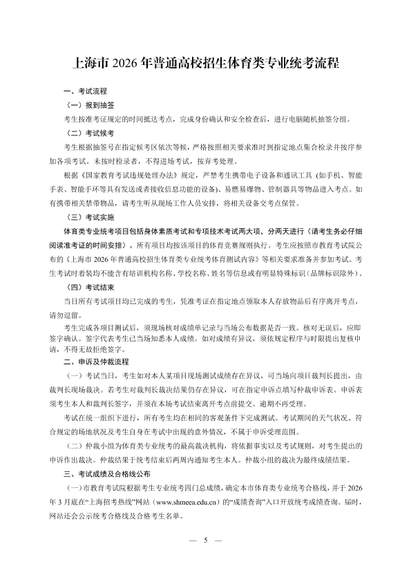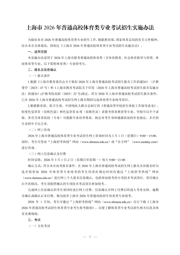 《2026年上海市普通高校招生体育类专业统考考生报考指南》发布