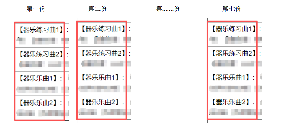 为了减少考生等待时间,除钢琴以外的其他乐器考生请在进入考点前按照填报曲目的顺序整理乐谱。举例:第一份:器乐练习曲1+器乐练习曲2+器乐乐曲1+器乐乐曲2第二份:器乐练习曲1+器乐练习曲2+器乐乐曲1+器乐乐曲2以此类推,共准备7份。温馨提醒:乐谱不能有任何标记