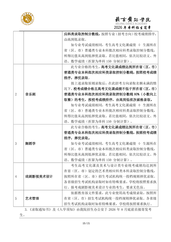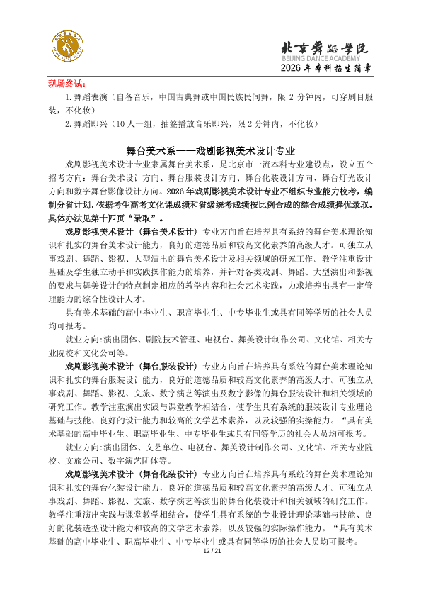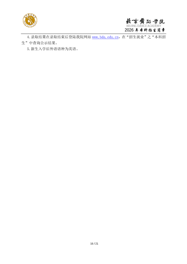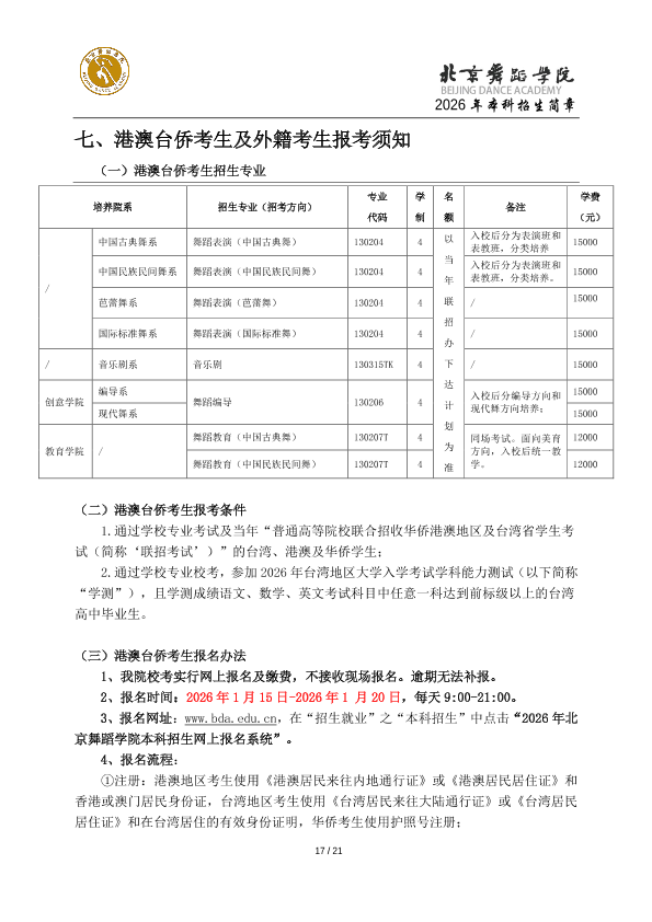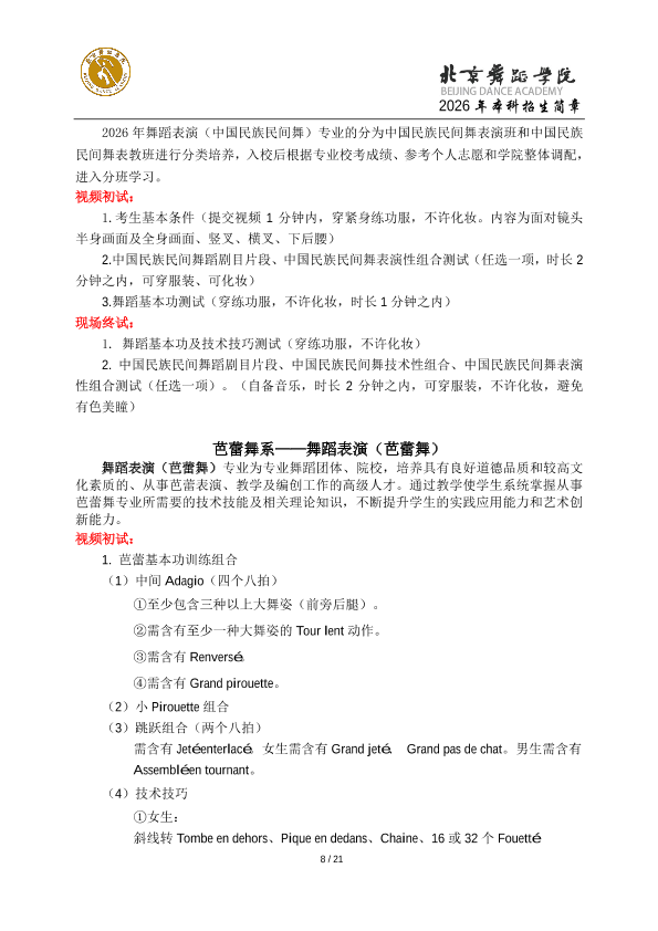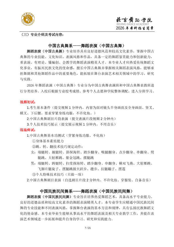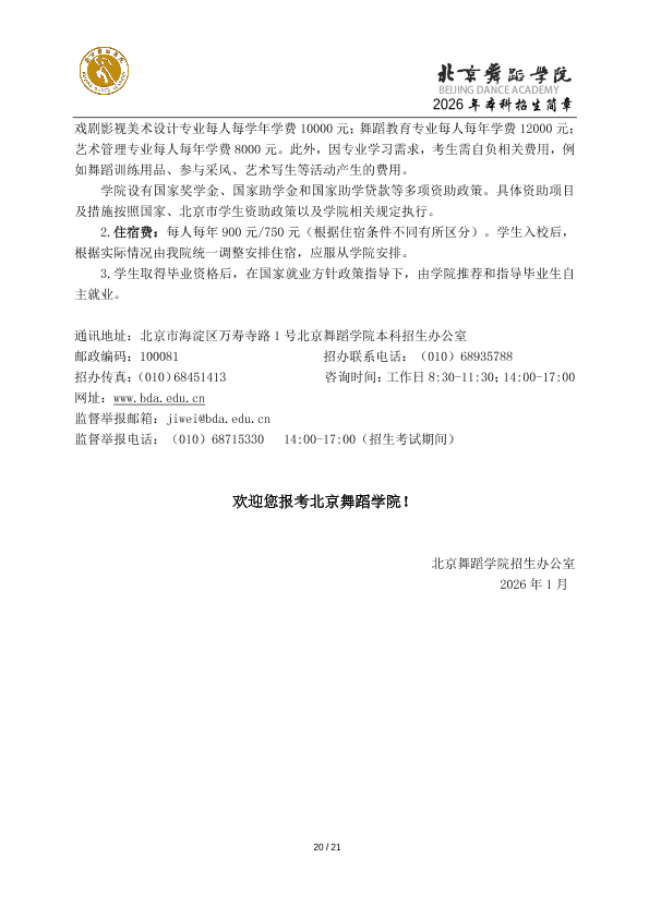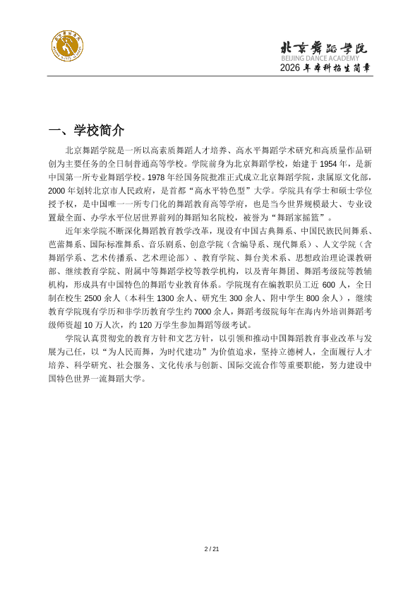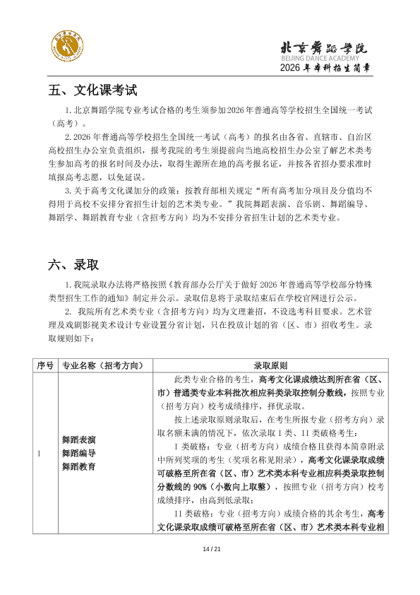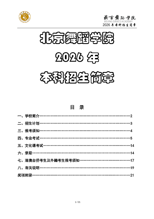 2026年北京舞蹈学院本科招生简章