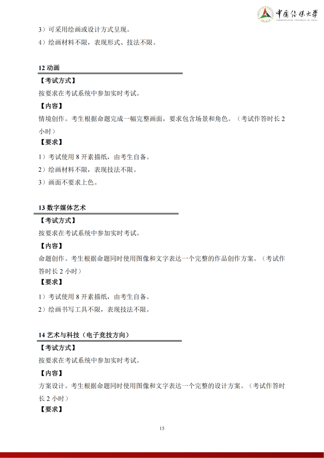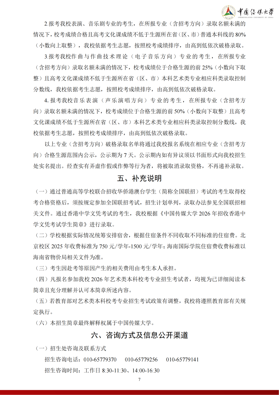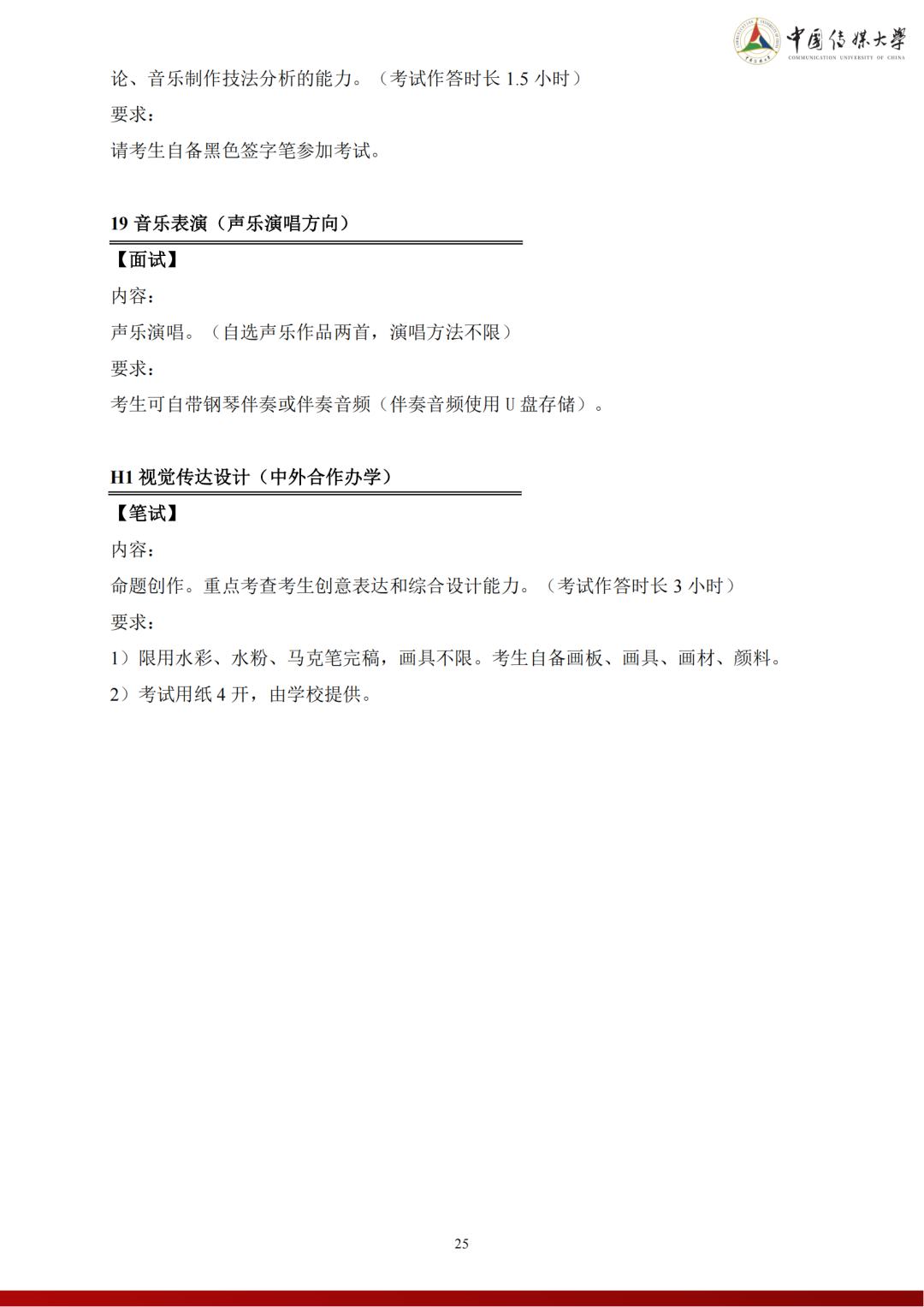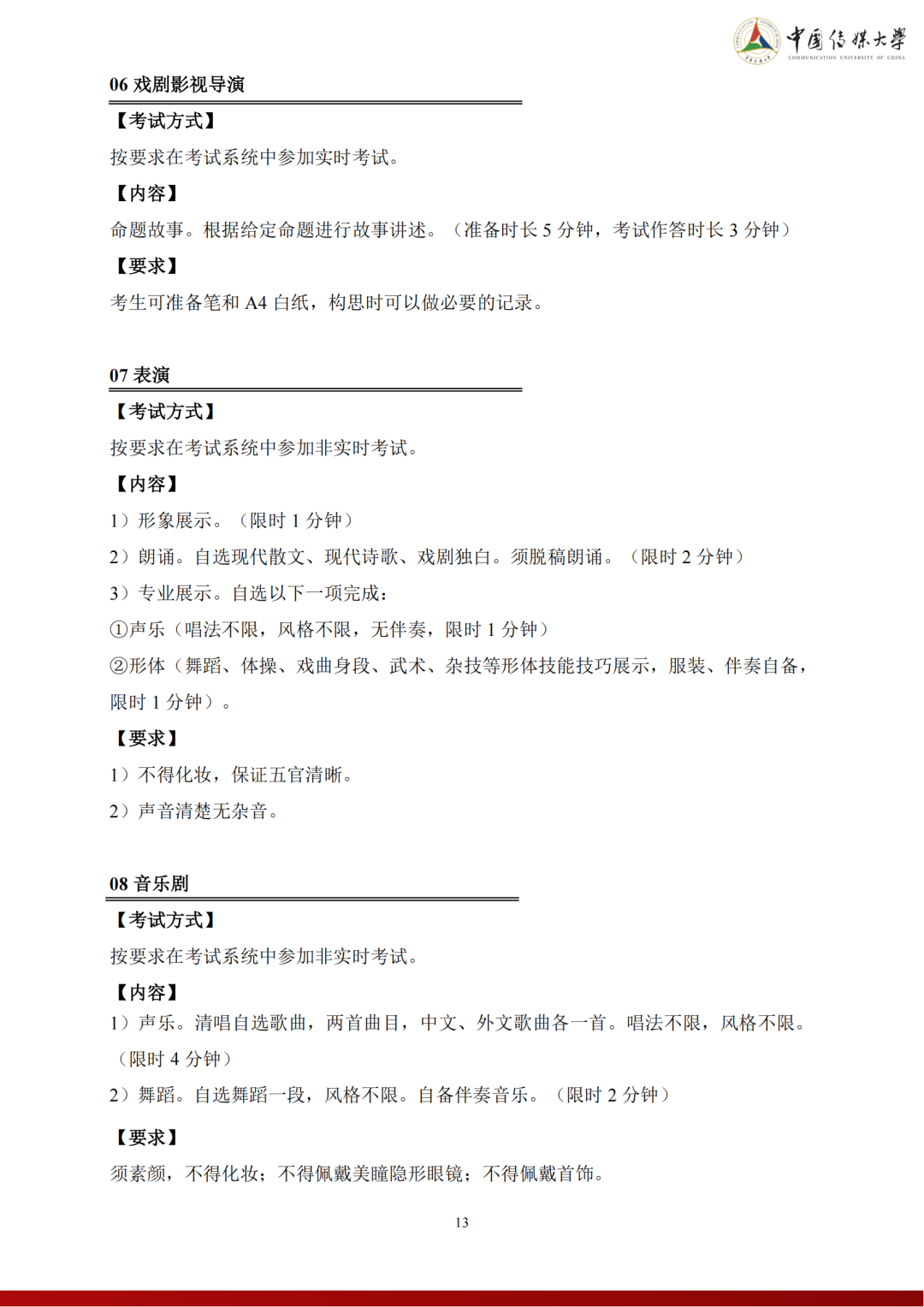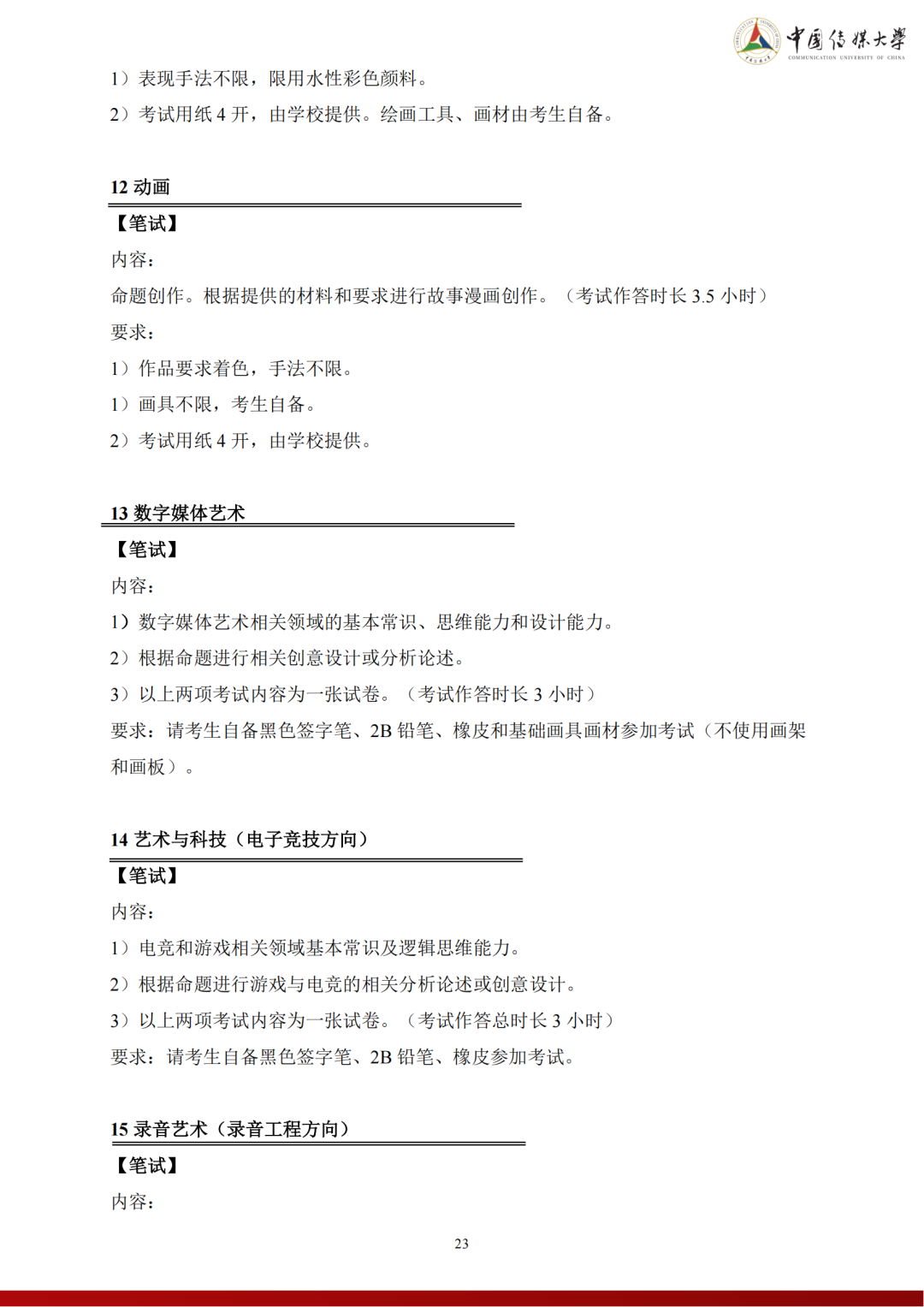 中国传媒大学2026年艺术类本科校考专业招生简章