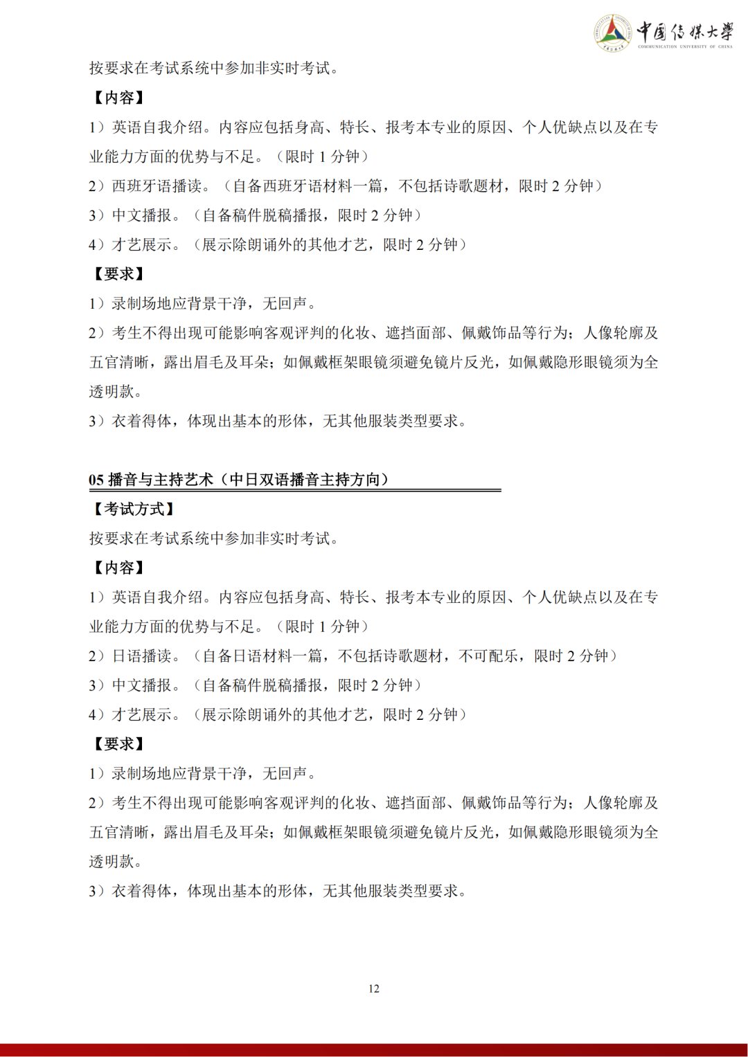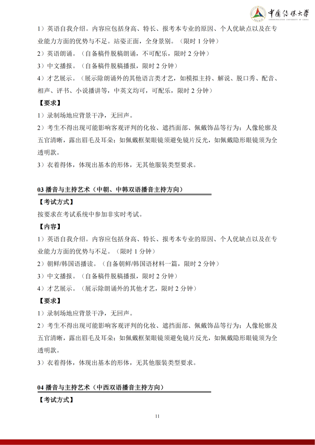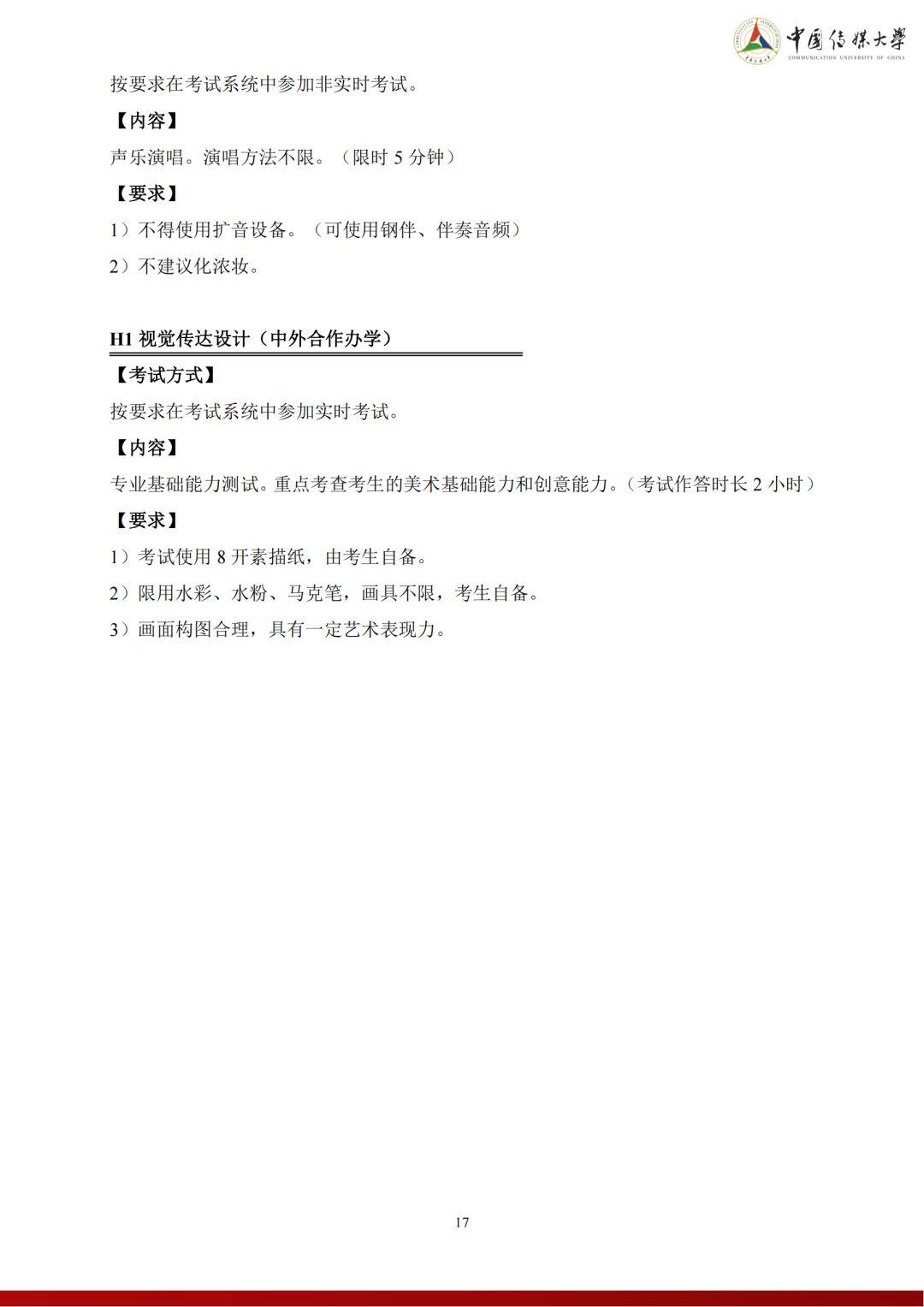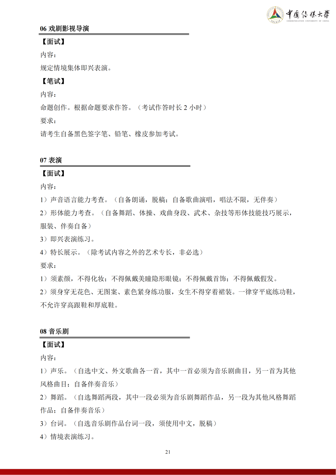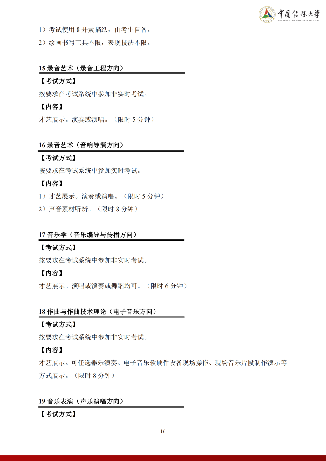 中国传媒大学2026年艺术类本科校考专业招生简章