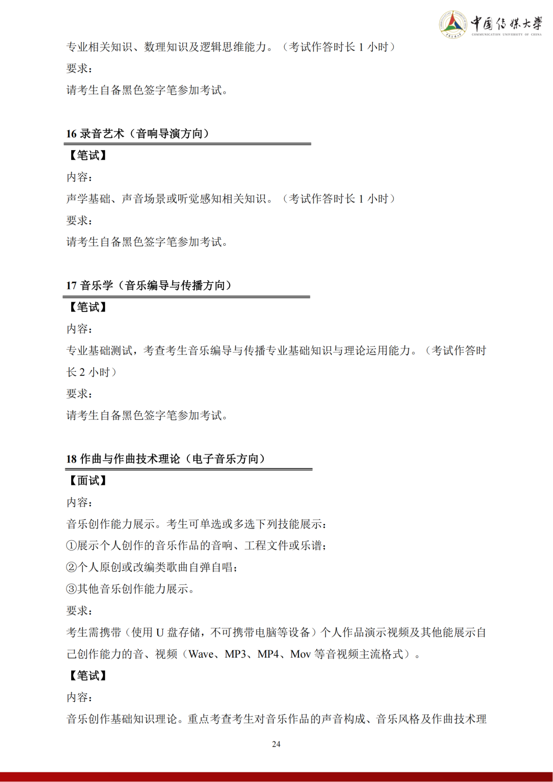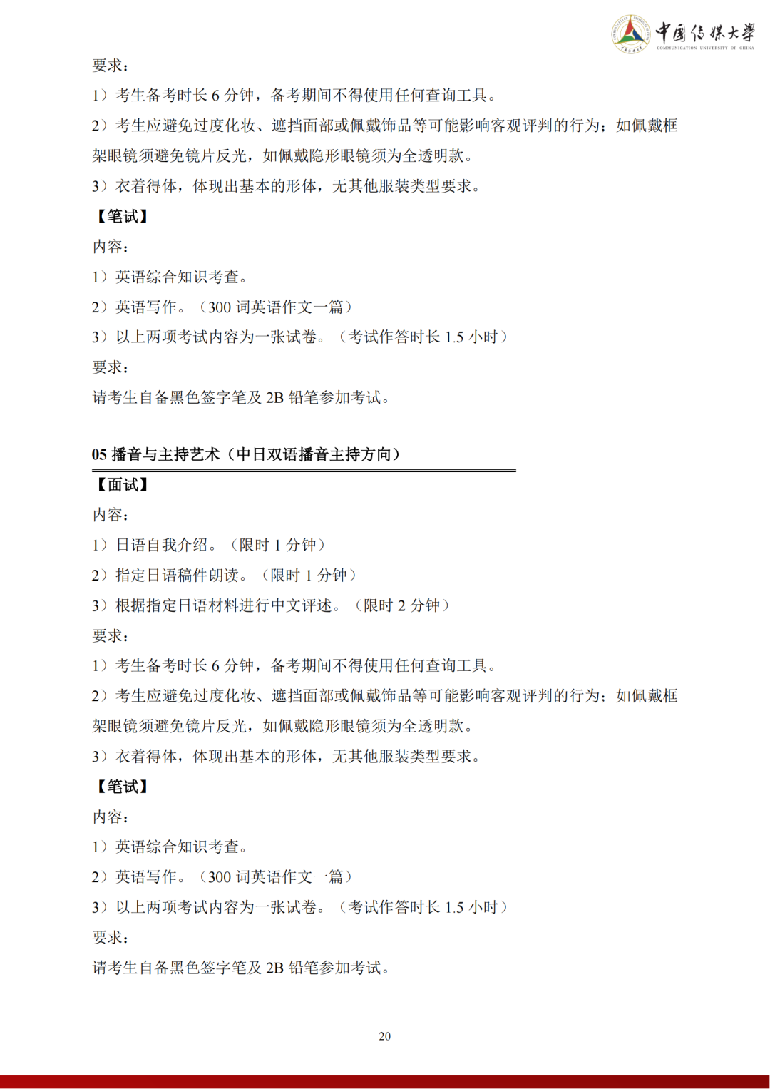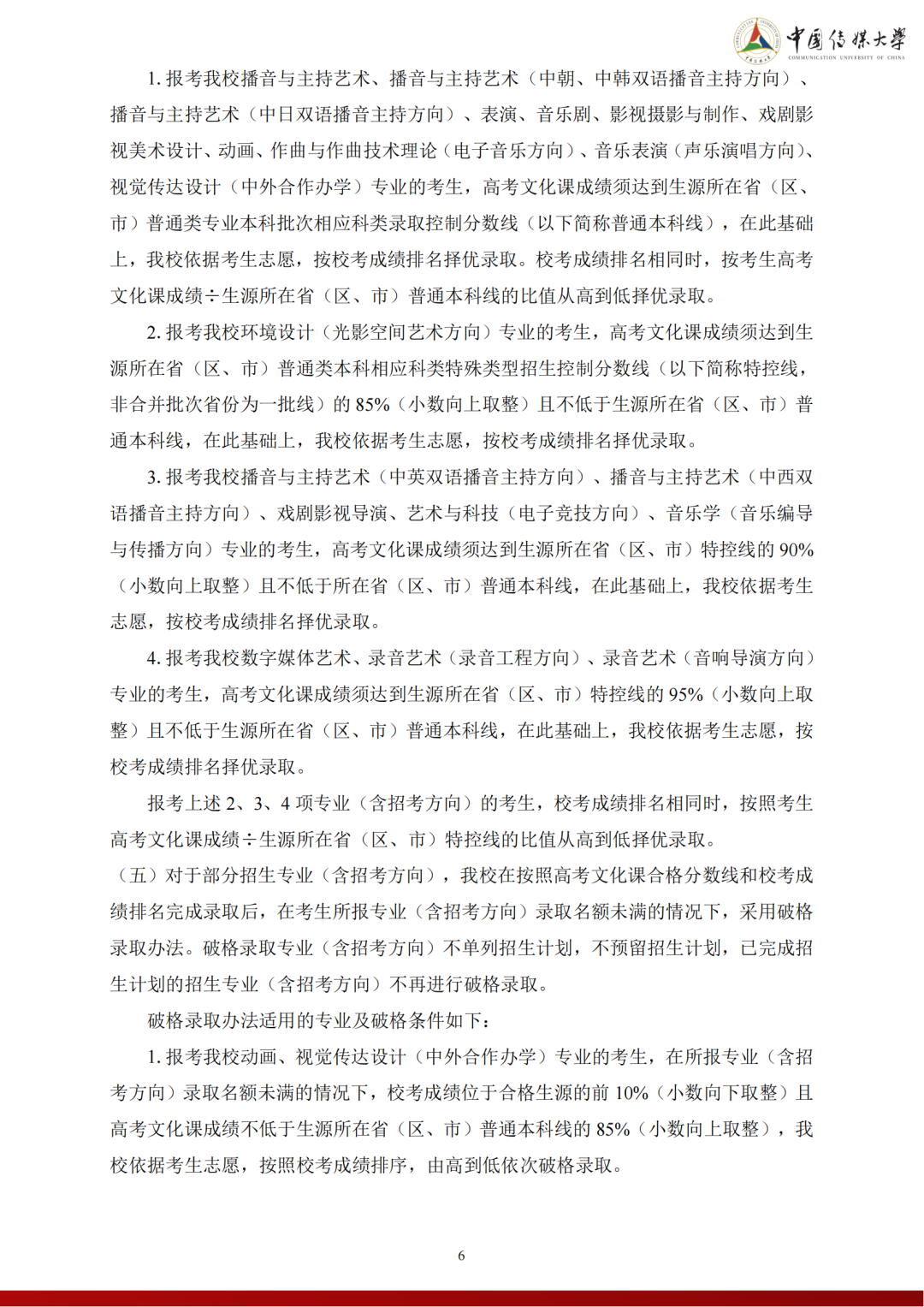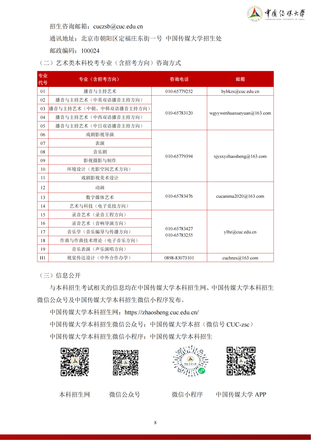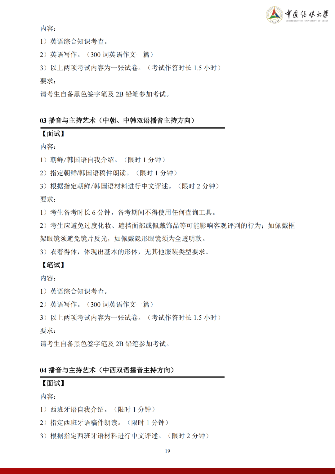 中国传媒大学2026年艺术类本科校考专业招生简章