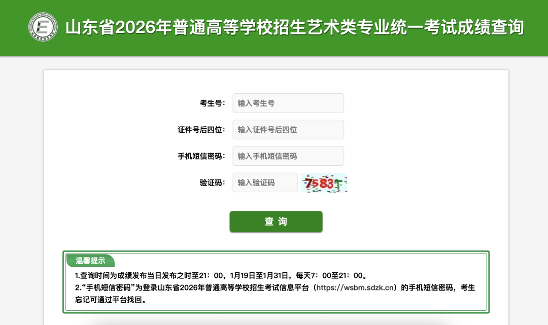 上述艺术专业各类别统考成绩于1月18日公布,请考生登录山东省教育招生考试院官方网站(http://www.sdzk.cn/)“成绩查询”栏目查询。您还可以关注“山东省教育招生考试院”微信公众号,点击“查询系统”即可查询成绩。