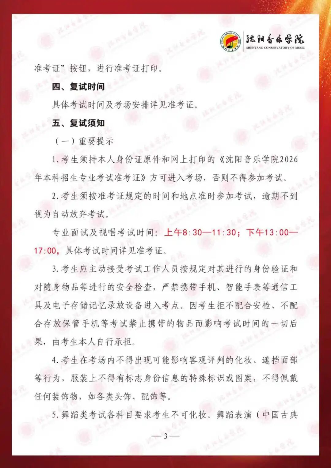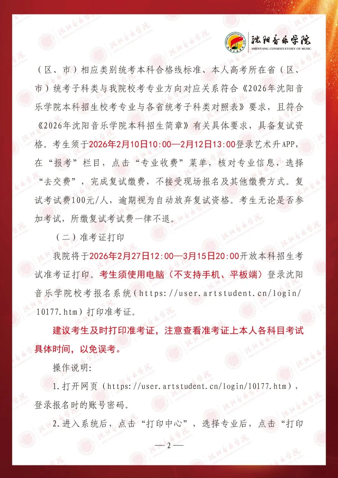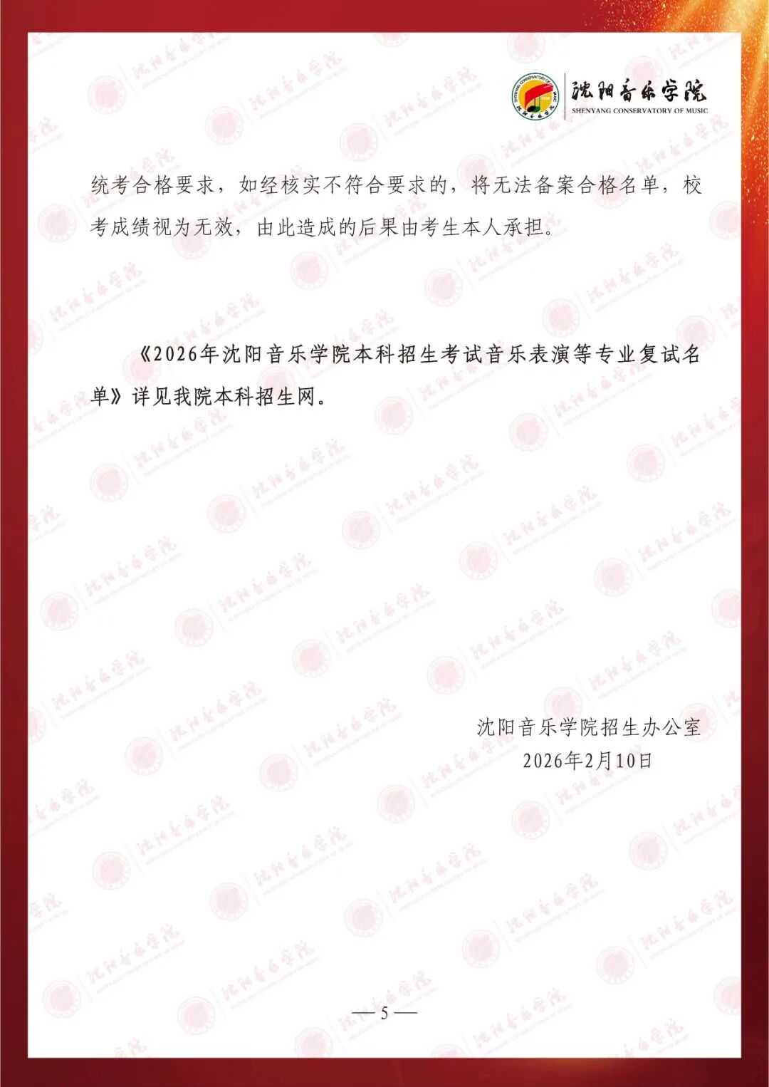 2026年沈阳音乐学院本科招生考试音乐表演等专业复试名单及考生须知
