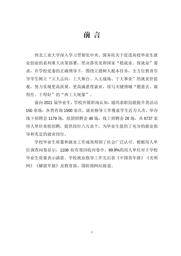 西北工业大学2021年就业质量报告