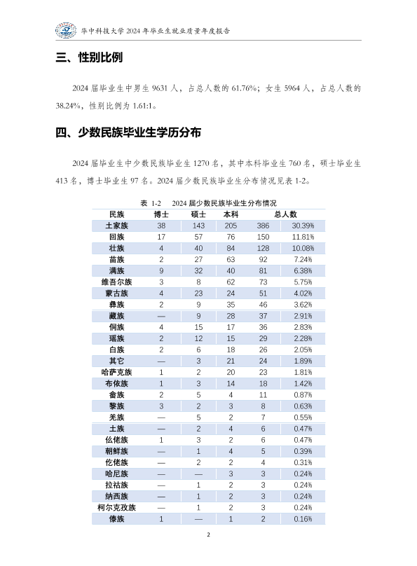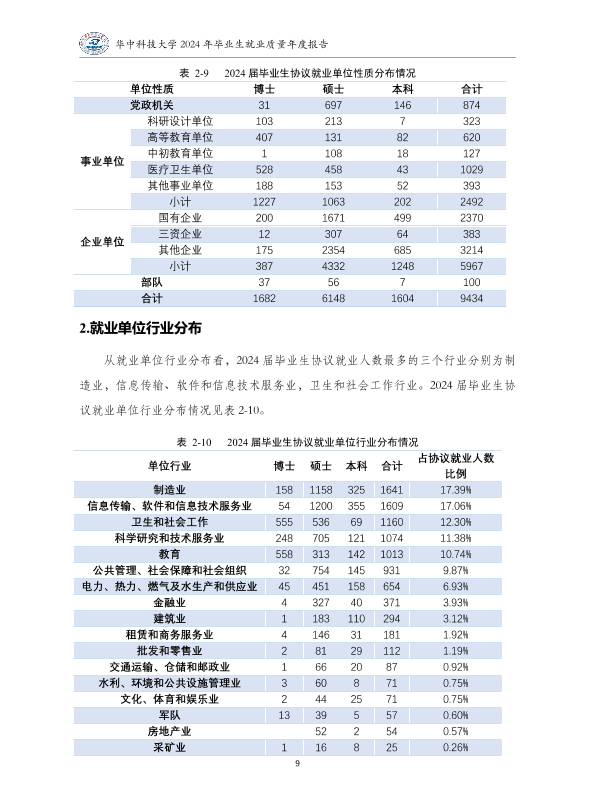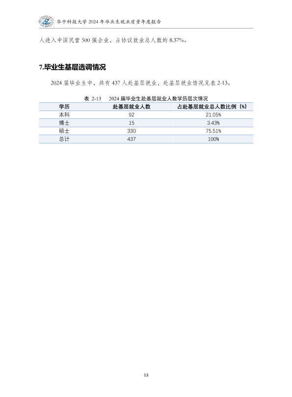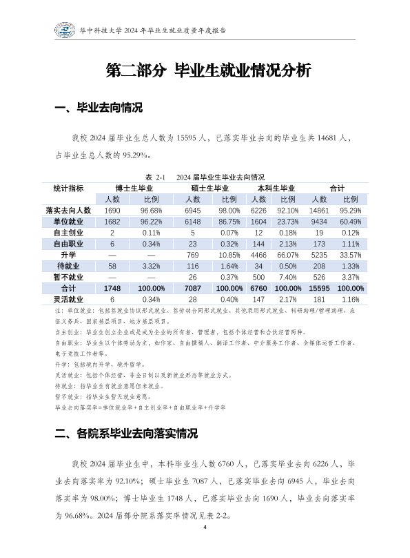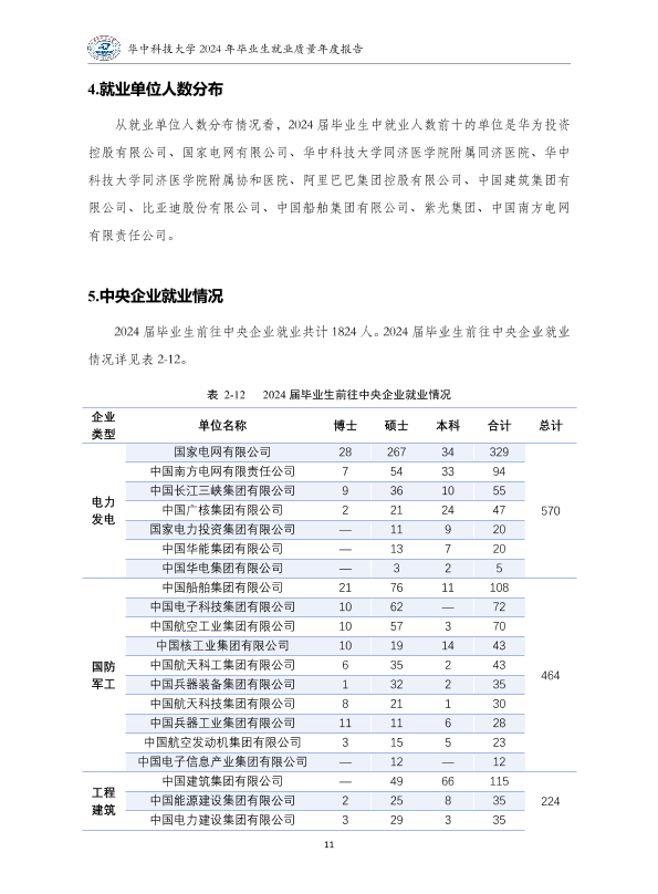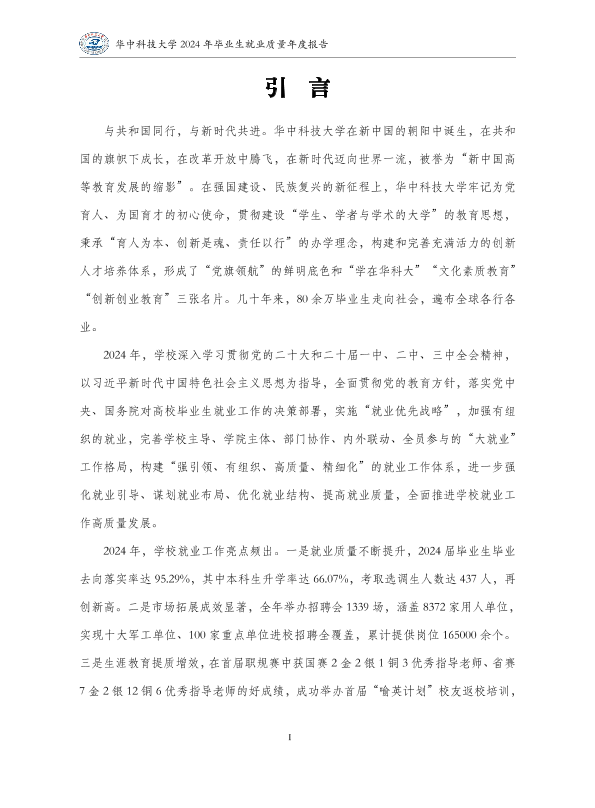 华中科技大学2024年就业质量报告