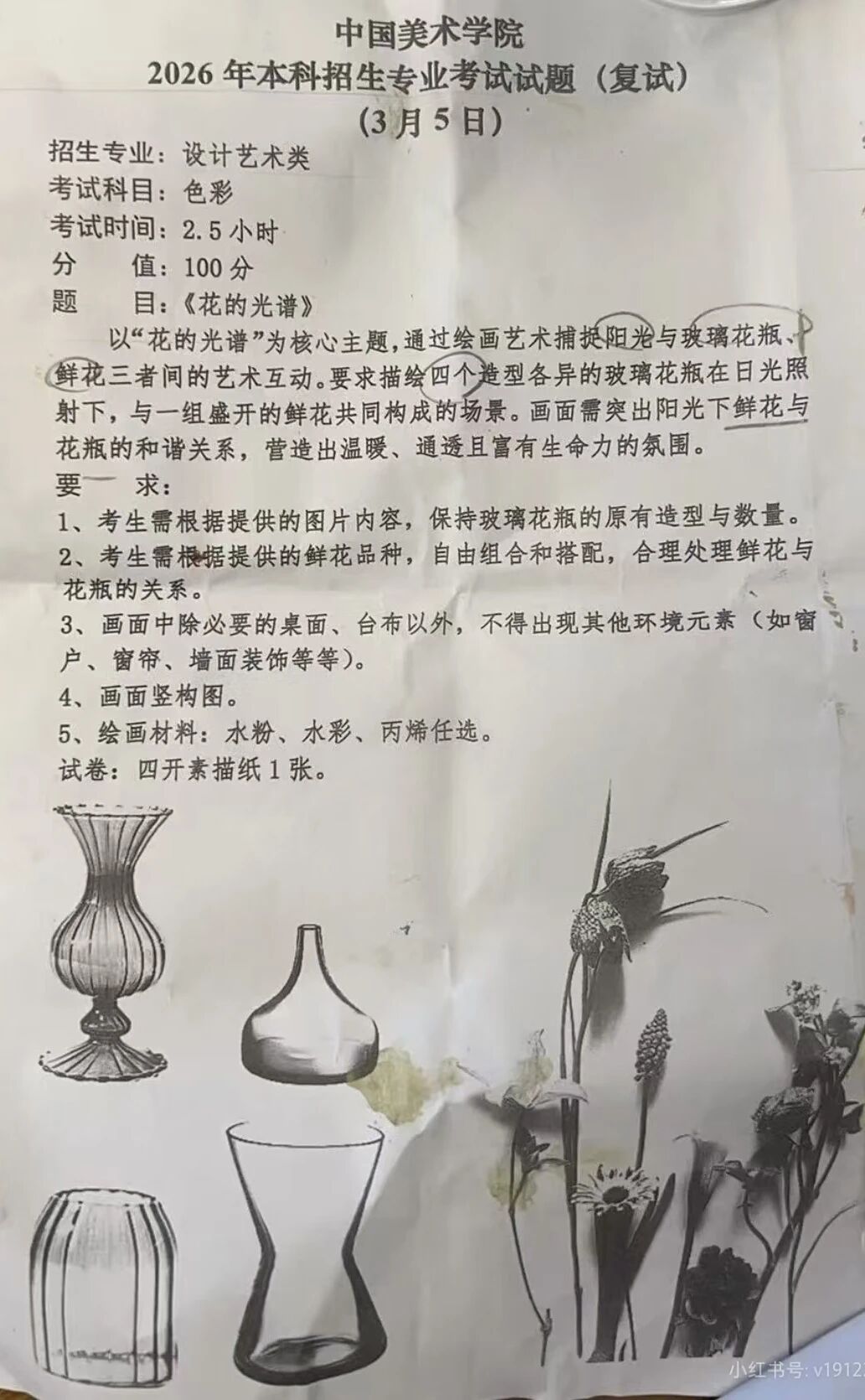 2026年中国美术学院校考复试考题